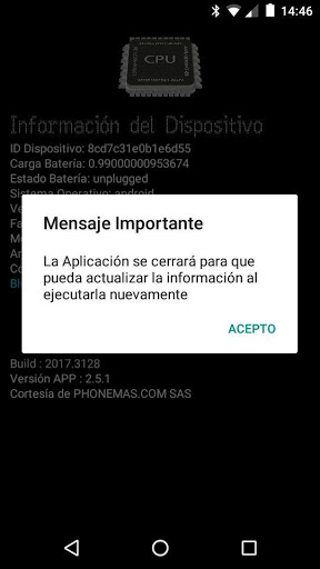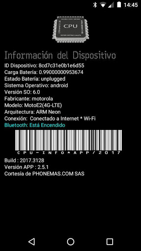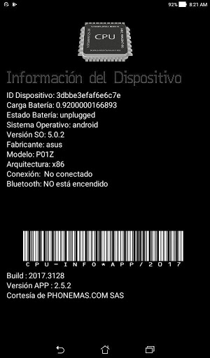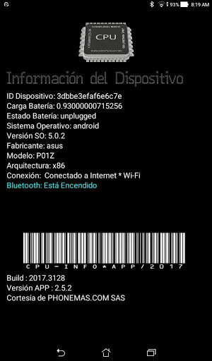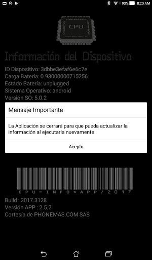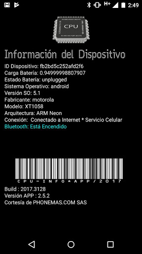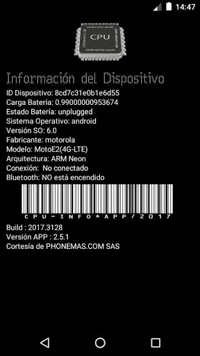 Despliega información básica del dispositivo móvil, así: