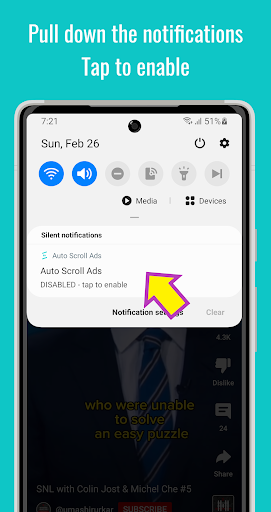 3) Pull down the notifications, and tap the Auto Scroll Ads notification. This will enable auto scrolling of ads.