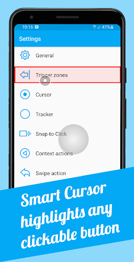 Snap-to-Click: When you move the cursor, any clickable button will be highlighted. Smart Cursor also recognizes which button you are aiming at. Once the button is highlighted, you can already perform a click on it by tapping the tracker. This greatly helps with clicking small buttons.