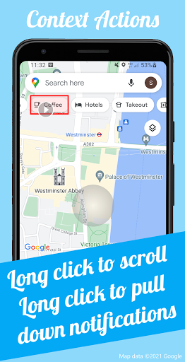 Context actions (Pro version): With Context actions, long pressing a button will trigger an action specific to its function. For a button in a horizontal row it's scrolling, for the status bar it's pulling down the notifications.