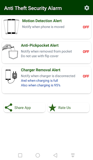 Note :- This app doesn't claim that it can avoid theft completely. It's an Anti-theft App user's responsibility to be vigilant. With this Anti Theft Alarm app, only you can prevent theft.