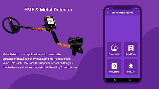EMF meter showing you the quick and accurate values of the magnetic field strength around your device. Detect metal the accuracy of metal depends on the magnetic sensor of your device.