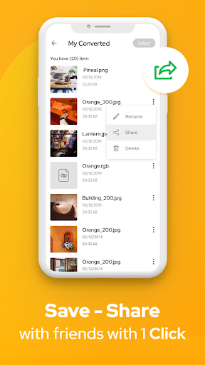 ☂ Easily save and share successfully converted files for friends when using the Image Converter: JPG to PNG & Picture Converter app.