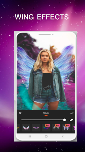 photo editor offers you a set of cool tools like “Drip effect – Neon effect – Wing effect – Overlay effect – Filters – Motion effect – Drip Art – Mirror effect – Splash & Blur effect …” that helps you create an eye-catching image.
