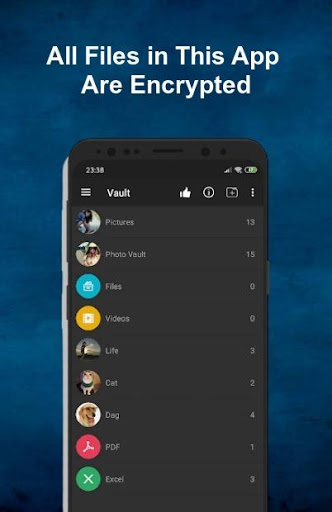 A: You can hide photos in photo locker and videos in videos locker inside this app.
