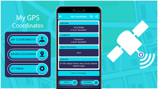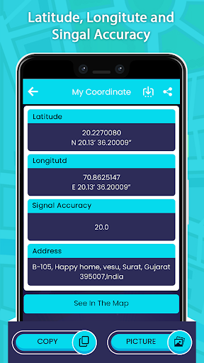 Copy and share your current gps coordinate with friends and families using GPS location in latlong format, address or both.