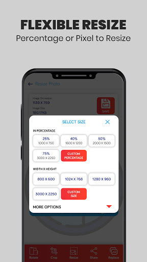 This app offers super easy way to reduce photo and video size by just one click. You can share these photos and videos on emails, social media and many more. It also saves more than 90% storage on your phone when you do resize and replace.