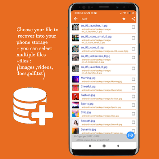 récupération de fichiers est une application qui utilise beaucoup de méthodes et de scripts spécialisés dans la récupération de fichiers pour rechercher des fichiers supprimés, perdus ou endommagés par une autre application et chargés à l'écran pour vous permettre de les récupérer, de les restaurer ou de les récupérer. il againe à la mémoire de votre téléphone.