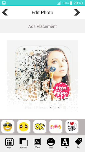 4/ Use other editing tools : this Pixel effect photo editor has text and emoji effect .