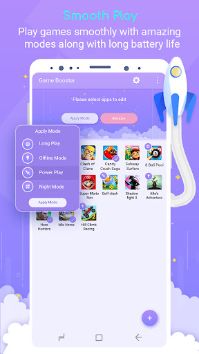 Assign your favorite play style for each game and boost the app within that game play mode! Like Play offline Mode, Long Play Mode and you can customize the modes by choosing the best setting of your choice. Configure Mobile-Data, Bluetooth, Brightness, Screen Rotation, Data Auto-Sync, and Sounds.