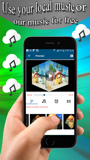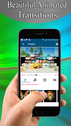 have timer you can change clip length. Photo to Video Converter make movie that you share your friends.Image to Video Converter app have beautiful graphics.
