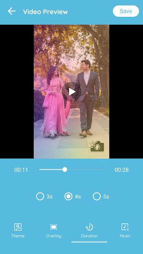 Birthday video Maker App creates customized photo video with largest category of birthday songs and photos using overlay, video duration and music.