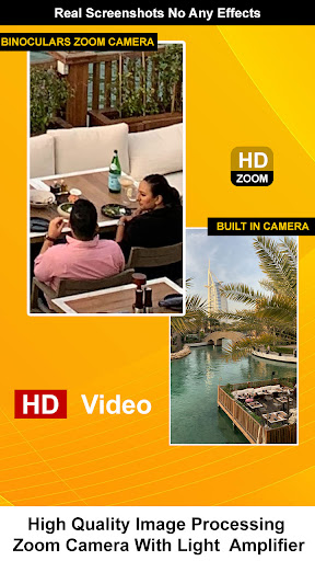 The Ultra Mega Zoom Binoculars V11 Camera (Photo & Video) is a professional camera application. Zoom is now available on every smartphone, so zoom depends upon the smartphone's built-in camera. The application provides a brightness and saturation progress bar through which you can adjust the brightness and color of the camera to shoot a better photo and video.