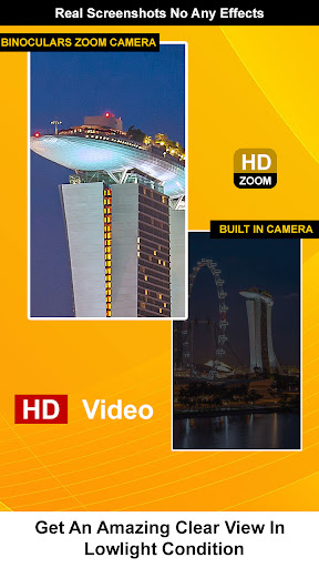 Photo Video Binoculars Camera application uses specially developed powerful magnification features for record amazing videos and pictures of your desire even when they are far away and not very clear otherwise.