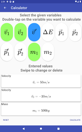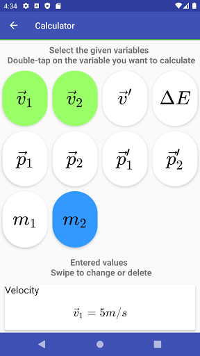 Using our brand-new Calculator / Solver features, this app even helps you to solve your physics homework: Just select your given variables, enter the values and solve for your desired variable. For example, it is given that acceleration is 10m/s² and mass is 20kg, so what is the resulting force? PhysicsApp easily tells you the result of 200N. Of course, it also works using it for more complex tasks and assignments.
