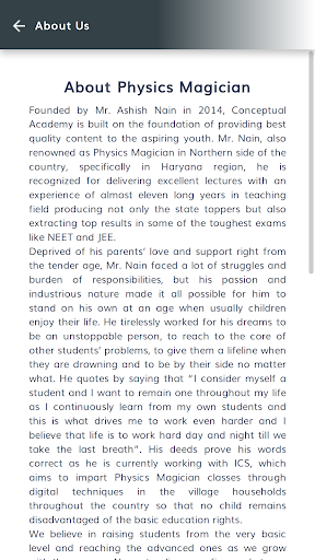 Founded by Mr. Ashish Nain in 2014, Conceptual Academy is built on the foundation of providing best quality content to the aspiring youth. Mr. Nain, also renowned as Physics Magician in Northern side of the country, specifically in Haryana region, he is recognized for delivering excellent lectures with an experience of almost eleven long years in teaching field producing not only the state toppers but also extracting top results in some of the toughest exams like NEET and JEE.