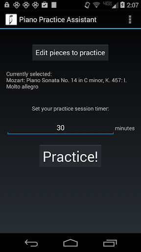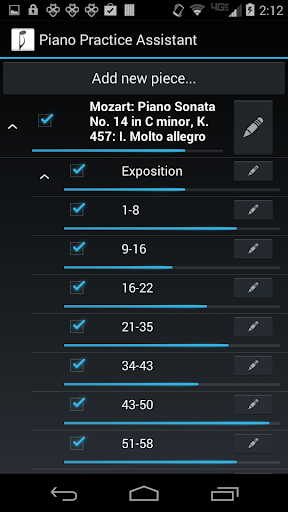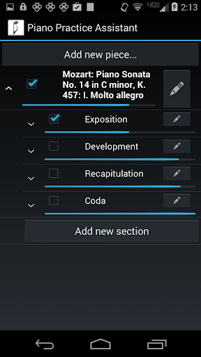 The app also comes with a helpful example piece divided into sections and subsections (Mozart Piano Sonata No. 14 in C minor, K. 457), as well as tips for practicing with Piano Practice Assistant.