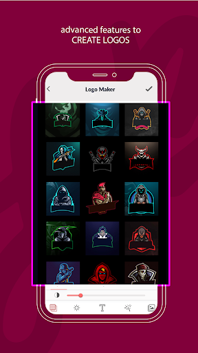Gaming logo maker also has a huge collection of categorized art (Stickers), graphic elements, shapes, backgrounds & textures to create an original icon in no time. Just tap fingers on the screen of your mobile device and start making your masterpiece.