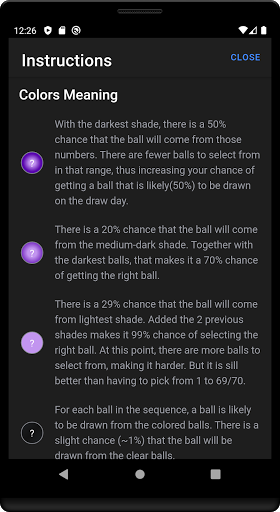 The app uses colors to indicate the balls most probable to be drawn thus allowing you to compose a set that is likely to win. By showing you the numbers to pick from, and the ones not to pick, the app substantially increase your chance of winning at MegaMillions and PowerBall.