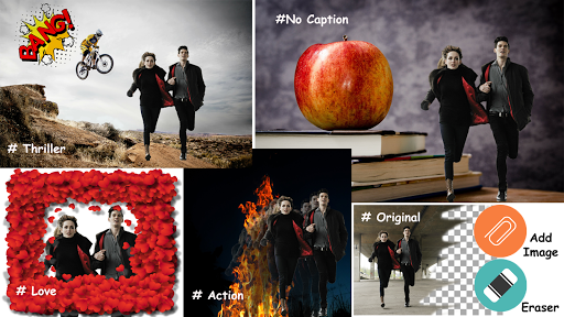 How to Use : Take eraser and freely erase backgrounds to cut out the your desired area and use new background either from your Camera Gallery or our featured HD backgrounds to change the auro of the pic
