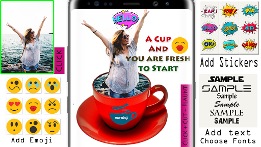 With Quick Background Changer quickly change the photo surrounding and environment, and apart from this you have freedom to add text and funny stickers on photos which gives an eye catcher aspect to your picture.