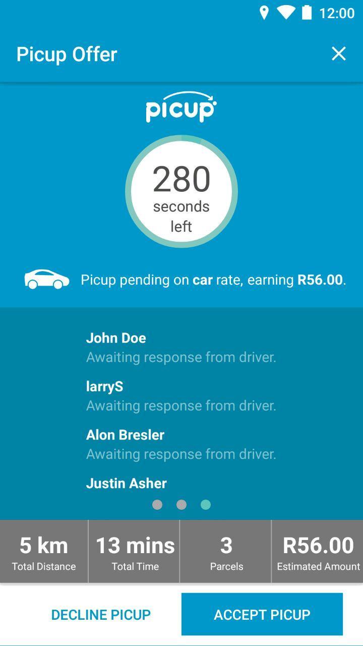 No boss and no schedules, you decide on your location and when you would like to work. Picup offers a flexible way to earn extra cash. Once you have been activated on our platform simply log online and if you are the closest rider or driver to the collection point, the request will pop on your screen first. You then have 20 seconds to accept or decline – easy as that.