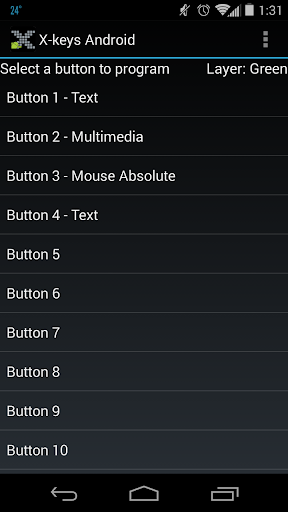 X-keys Android is a programming utility for X-keys Mobile programmable keypads and input devices. X-keys buttons and pedals can send keyboard commands, mouse actions, game controller commands, multimedia commands, and touches or swipes.