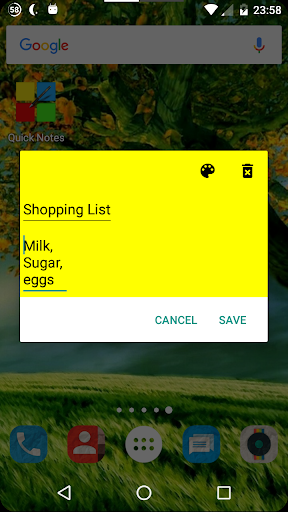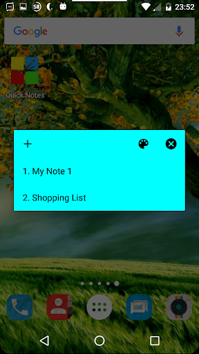 Quick Notes is a fast notes on your Android phone. Features: - No limited number of notes - Setting the display color - Small app size - Free, no ads
