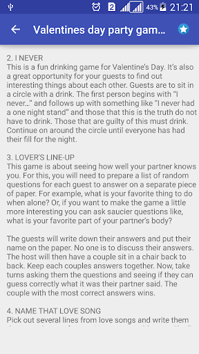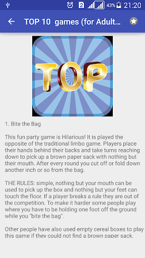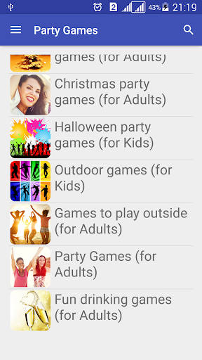 This application is unique because it combines activity for adults such as popular drinking game for a cheerful group of friends, and include funny children games for girls and boys above 10 years. Everyone can find a deal like Christmas or New Year Eve party game is great for dinner parties and events where everyone is sitting round a table. Most of all our adult party game pages can be used for adult games to play outside as well.