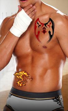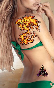 Tome la foto y ajuste su tatuaje de la opción en él y usted puede volver a clasificar según el tamaño el tatuaje, la cortina transparente de los tatuajes y puede girar.