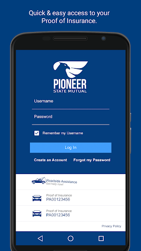 Brought to you by Pioneer State Mutual Insurance Company: With the My Pioneer mobile app you can: Pay your bills, report claims, get your proof of insurance, call for roadside assistance, view policy documents and more. Use your existing My Pioneer online viewing account to log in or you can create a new account here.