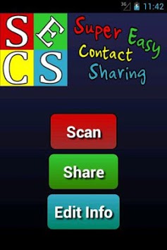 Tired of copying down a name and number every time you meet someone new? With SECS SuperEasy Contact Sharing, you don't have to add contacts by hand! SECS allows you to share contact information quickly and easily, using customizable on-screen QR codes.