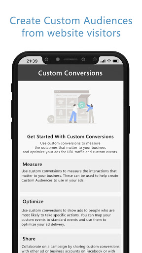 When someone visits your website and takes an action (for example, buying something), the Business pixel is triggered and reports this action. This way, you'll know when a customer took an action after seeing your Business ad. You'll also be able to reach this customer again by using a Custom Audience. When more and more conversions happen on your website, Business gets better at delivering your ads to people who are more likely to take certain actions. This is called conversion optimisation.