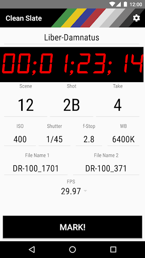 Clean Slate is a tool to help you synchronize recording devices such as cameras and sound recorders in post-production by displaying a flash-frame and simultaneously playing a synchronization tone. Clean Slate allows you to enter notes and ratings for each take and save it on your device.
