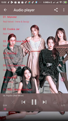 Kpop Song RED VELVET is an application that contains a collection of the music of RED VELVET's songs which became hits and the most popular both at the time of the release of these songs until now.