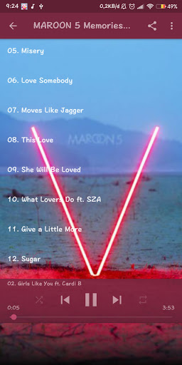 MAROON 5 Memories Song Offline is an application that contains a collection of the music of MAROON 5's songs which became hits and the most popular both at the time of the release of these songs until now.