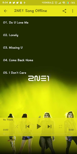Song Offline 2NE1 is an application that contains a collection of the music of 2NE1's songs which became hits and the most popular both at the time of the release of these songs until now.