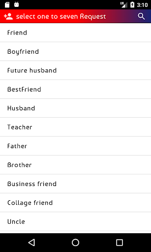 * send relational based request like bestfriend , boyfriend , future husband ,father , husband etc..
