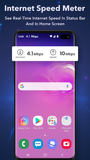 Internet Speed Meter displays your internet speed in status bar and shows the amount of data used in notification pane. This helps you to monitor network connection anytime while using your device.