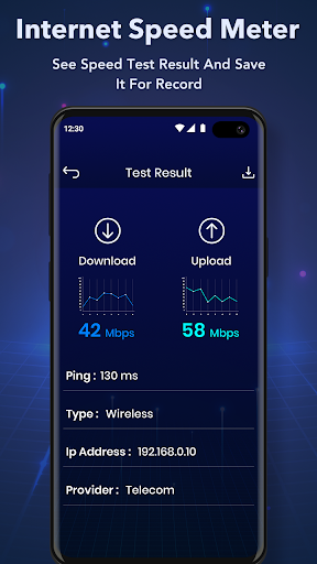 With just one tap, it will test your internet connection through thousands of servers worldwide and show accurate results within 30 seconds.