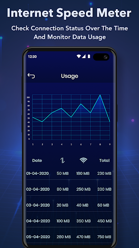 Internet Speed Meter displays live internet speed and data usage per app, check hot spot usage, background and foreground usage, Set billing cycle with specific date and limit for metered as well as unmetered network.