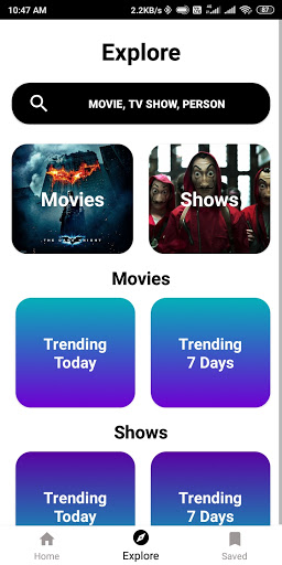 -> You can explore Movies & Shows by 4 categories each like Popular, Now showing , Top rated ,etc...