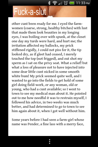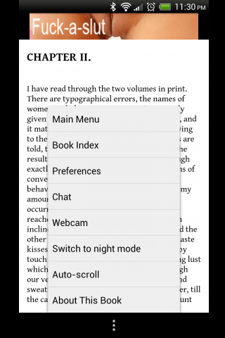 My Secret Life, by "Walter", is the memoir of a Victorian gentleman's sexual development and experiences. It was first published in a private edition of eleven volumes, which appeared over seven years beginning around 1888. The work itself is enormous, amounting to over one million words, the eleven original volumes amounting to over 4,000 pages. The text is repetitive and highly disorganised, but its frank discussion of sexual matters and other hidden aspects of Victorian life make it a rare and valuable social document. It has been described as "one of the strangest and most obsessive books ever written". The first edition was probably printed by Auguste Brancart, in an impression of only 25 copies. In the twentieth century My Secret Life was pirated and reprinted in a number of abridged versions that were frequently suppressed for obscenity. In 1932, for example, a New York publisher was arrested for issuing the first three volumes. In the USA it was finally published without censorship in 1966 by Grove Press. App also has free anonymous chat! Share with other users of our adult apps. Create private rooms, send private messages, post images and urls and lots more! Also, free Web Cams! Free and premium webcams, 100's to choose from! Accessed from the ebook menu! No data connection is needed to read this ebook. This is a full length, complete novel. This book comes packaged in a high quality, feature rich, reader so you can begin enjoying it straight away. Reader Features include: Left/Right screen tap to turn pages. Top/Bottom screen tap to turn pages. Center screen tap to open menu options and page slider. Table of Contents for quick navigation. Portrait or Landscape Mode. Opens up on last page read. Feature packed preference settings: Variable Font Size. Variable Font Colour (Full colour picker). Night/Day Mode. Change Font Color and Background colour for Night/Day Mode (Full colour picker). Auto-scrolling with style and speed settings. Change Fonts. Change Margins for screen tap areas. Animation settings for Page turn effect.