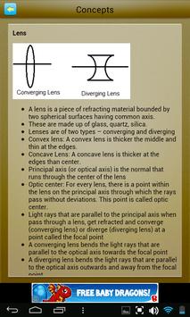 The app allows you to learn and review High school and College Physics concepts in a very simple and user friendly manner. In the "Learn" mode of the app, you click on the "Concepts" button, review the "concept text" and then answer multiple choice questions related to the Physics concept that you just reviewed.