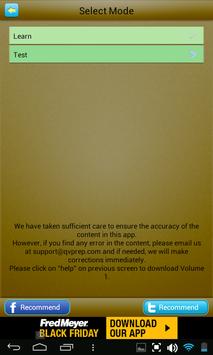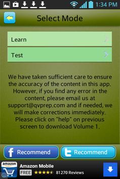 In the "Test" mode, the app does not show the context text to help you. Instead, you use your learnings from the app and attempt multiple choice questions. Again, the app prompts you with detailed answer explanation in case you answer wrong. This proven process again reinforces learning.