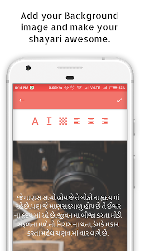 * Choose shayari/Shayri with image option from menu for create best shayari/Shayri within background image or color.