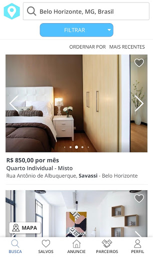 is een onroerend goed portaal waar u de beste gedeelde kamers, eenpersoonskamers, Kitts, flats, pensioenen, appartementen, toppings en huizen te huur in heel Brazilië kunt vinden.Zie foto's, geschalde beschrijving, informatie en gedetailleerde functies, evenals kaarten en andere bronnen voor iedereen die een woning wil huren.; - Zoek naar steden en buurten van alle Brazilië; - Filter uw zoekopdracht voor kamertype, prijs, regels, Data en faciliteiten; - Contact rechtstreeks de adverteerder; - Salve uw zoekopdrachten naar favorieten voor latere opvattingen; - Verken de wijk door de app (school, metro, winkels, park); - Bekijk de aanbiedingen op de kaart of lijst; - Toegang tot alles De foto's en details Vastgoed.