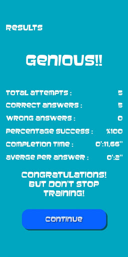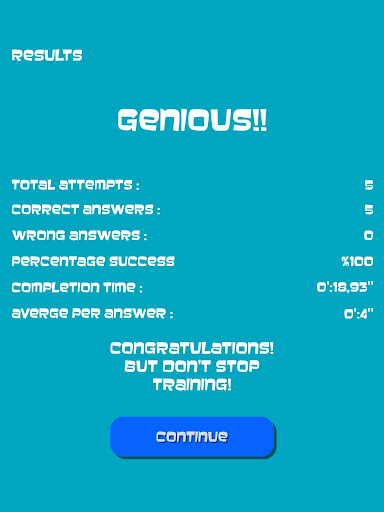 Confirm your progress through quizzes and statistics where you can also find the average time per answer and the total time to complete the quiz.