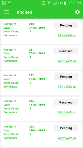 - Kitchen Received Status only.