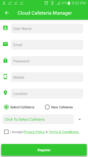 Demo Cafeteria Is used for Demo Testing, please use the listed users to login and check the full process.